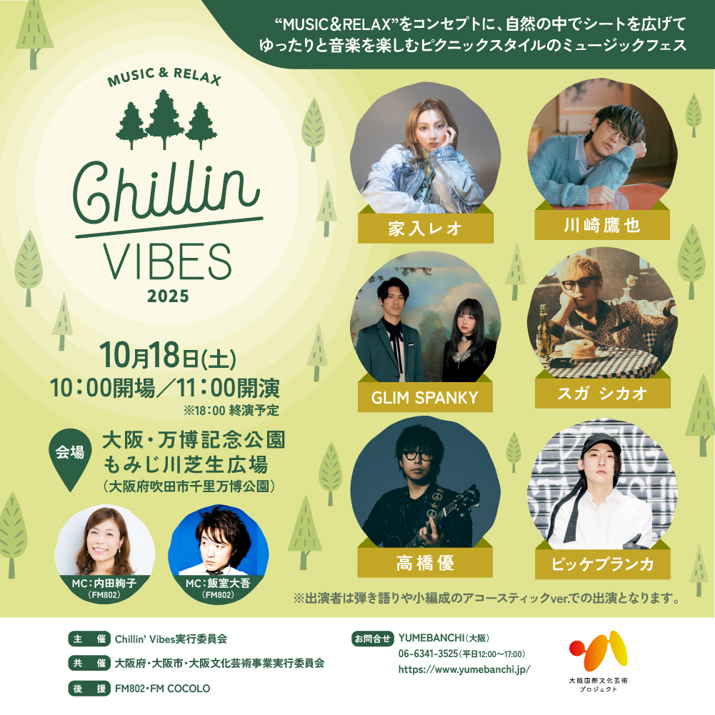 ※雨天による開催有無に関しましては、開催2日前・10月16日15時(予定)、気象庁発表の予報にて決定し、Chillin' Vibes公式サイト 及び 夢番地ホームページ にてご案内いたします。
